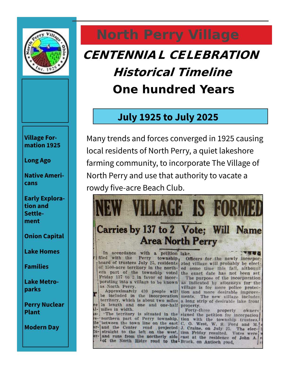 NORTH PERRY NEEDS YOUR HELP IN LOCATING HISTORICAL INFORMATION.